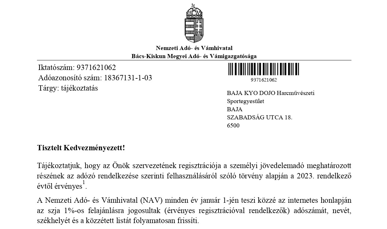 Ha úgy gondolod Te is beállnál a sorba, jelentkezz és légy Te is harcos. 2022-12-07 | | Adód 1% felajánlása